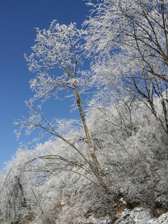 受較強(qiáng)冷空氣影響,秦嶺腹地涼風(fēng)埡山頂,出現(xiàn)大面積霧凇景觀(guān)。玉樹(shù)瓊枝,晶瑩剔透,讓涼風(fēng)埡山頂變得像童話(huà)世界一般,美不勝收。 央視記者王志杰 圖片來(lái)源:央視新聞微博