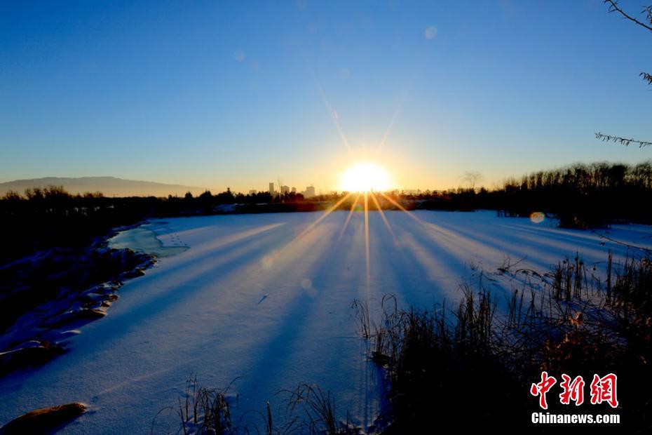 寒冬時節(jié),雪后初晴,地處甘肅河西走廊的張掖市濱河新區(qū)人工湖被白雪覆蓋,涓涓細流形成晶瑩剔透的冰瀑、冰掛,成為冬日一景。 陳禮 攝