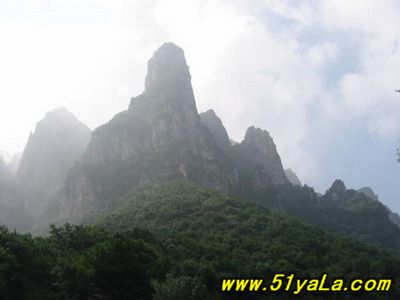 五老峰史稱東華山,歷史上為北方道教名山,海拔1809.3米,奇峰險峻,需攀鏈而上,屬丹霞地貌。這里是層層峰巒,森林古木,各種生物覆蓋著整個山野。花紅草綠,山光水色,風(fēng)光旖旎非凡,故有“北有五臺觀庫存宇,南在五老看風(fēng)光”之說。游人往縣城西南遠(yuǎn)眺,見有東錦屏峰、西錦屏峰、太乙坪峰、棋盤山峰四山峰仙態(tài)神姿,隱現(xiàn)于云煙蒼茫之中,將高1809.3米的玉柱峰環(huán)抱其中,“有偃蹇傴樓之伏”,猶如五位老人抱拳作揖迎貴賓之勢,故名五老峰。