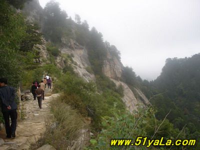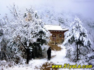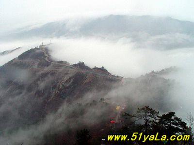 北武當(dāng)山主峰四周幾乎都是陡壁懸崖,只有一條人造“天梯”可攀。來到山腳下,過五里黃土、五里沙路,便是1400余級就山鑿筑的石階,凡險(xiǎn)峻之處,設(shè)有鐵索扶手。石階一線疊置,從下仰視,宛如“天梯”。游人攀登,每一步都可聽到悠揚(yáng)頓挫的“石音”,形成獨(dú)特的“石樂”絕景。沿著石階,奇松異石、廟宇石刻,掩沒在蔥郁的山林植被之中,相間點(diǎn)綴,相映成趣。主要的山石景觀有:古猿望日、石豬受難、九龍出洞、石象守山、天壺傾露、石羊朝圣、石龜下蛋、石虎、石蛤蟆、龜蛇斗智等。最令人稱奇的是“龜蛇斗智”奇觀,相傳神龜和青蛇不安心修道,互相格斗,經(jīng)過七七四十九天的麈戰(zhàn),神龜節(jié)節(jié)敗退,青蛇步步緊逼。其時(shí),恰逢真武大帝返宮,見狀,輕輕用手指一點(diǎn),龜蛇便動(dòng)彈不得,從此永久停留在這里,成千古一絕——“蛇石”虎視眈眈,“龜石”尾臨懸崖,萬斤重石,峭立崖畔,用力一推或經(jīng)風(fēng)一吹,便搖搖欲墜,令人心懸,所以又稱風(fēng)動(dòng)石,為我國罕見的景觀之一。主要的奇松景觀有:鴛鴦松、迎客松、托天松、母子松等。最使人嘆為觀止的是“擎天探海松”,其松立于石階半道,樹身技分兩杈,一直刺青天,一枝瞰群峰。近金頂?shù)悄咸扉T石階,旁邊陡崖上刻有“喬松”二字,據(jù)載為清代道光年間永寧州牧王繼賢手跡?,F(xiàn)存喬松樹樁直徑近1米,可以想見其昔日雄姿。主要的懸崖峭壁有:千仞壁、舍身崖、鷹嘴崖等。還有呈垂直分布的植被,其色彩和花期隨季節(jié)變化,給北武當(dāng)山披上了“春粉、夏艷、秋紅、冬白”的盛裝。登臨武當(dāng)之巔,一覽眾山,但見遠(yuǎn)山蒼茫,近日含黛,松風(fēng)撲面,白云飄逸;只聞松濤陣陣,山泉潺潺,鳥語唧唧,似琴弦輕撥;夏秋之季,如晴空萬里,金頂之下,叢林景觀相間,似七彩織錦;白云遠(yuǎn)處,群山連綿,猶如萬龍翻騰,極為壯觀。