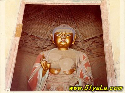 走進(jìn)第一層塔的南門,迎面便是高約10米的釋迦塑像。頂部有精美華麗的藻井。內(nèi)槽的墻壁上,畫有六幅如來(lái)佛像,門洞兩側(cè)的墻壁上,也繪有金剛、天王、弟子等壁畫。壁畫中最引人注目的是內(nèi)槽門額壁板上的三個(gè)女供養(yǎng)人。畫面雖不大,但人物的體態(tài)勻稱,面容豐滿,神情安詳而虔誠(chéng),衣帶似被微風(fēng)吹動(dòng),在表態(tài)中給人以動(dòng)的感覺。畫面的色彩至今仍很鮮艷,可能是后人在遼畫的基礎(chǔ)上重新描飾的。