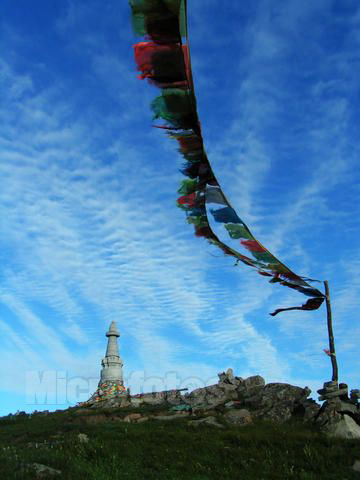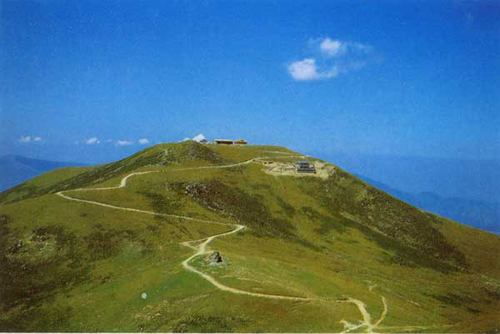 五臺(tái)山的西臺(tái)人稱掛月峰,又名明月山,海拔2773米。《清涼山志》載:西臺(tái)“頂廣平,月墜峰巔,儼若懸鏡,因以為名”。臺(tái)頂有泉,群山拱合,巖谷幽深;臺(tái)頂亦有寺,名叫法雷寺,內(nèi)供獅子吼文殊,其寓意是讓強(qiáng)大的獅子吼叫聲驚醒眾生。整個(gè)山勢(shì)峰巒疊嶂,如同孔雀開(kāi)屏。