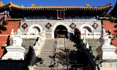 菩薩頂 臺(tái)懷鎮(zhèn)鎮(zhèn)北有一小峰,人稱靈鷲峰,亦名菩薩頂。所以稱之為靈鷲峰,是因?yàn)樗牡乩硇蝿?shì)頗似古印度摩揭陀國(guó)王舍城東北部釋迦牟尼佛說(shuō)法的靈鷲峰故名。據(jù)佛教史籍記載,東漢時(shí)期,我國(guó)佛教最初的傳播人攝摩騰和竺法蘭來(lái)到臺(tái)懷鎮(zhèn),見今菩薩頂?shù)男蝿?shì)頗似印度的靈鷲峰,因而命名之。所以也稱靈鷲峰為菩薩頂,佛教徒傳說(shuō)文殊菩薩曾在峰頂顯靈和說(shuō)法。 (責(zé)任編輯:李冬梅) |
