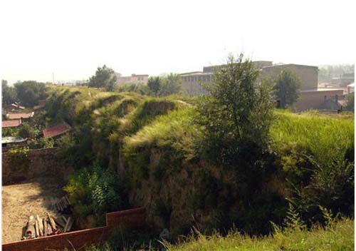在五寨縣有兩個武王村,有杏嶺子鄉(xiāng)前武王城村和東秀莊鄉(xiāng)后武王城村,兩村相連處,有武王城遺址。遺址四面環(huán)山,平面呈長方形,城墻依山而建,東西長約2500米,南北寬約1500米,周長約8000米。城內分為南北兩部分,城墻殘高0.5—7米,沿城墻四周共建有六個甕城,西面甕城保存完好。甕城平面呈半圓形。
