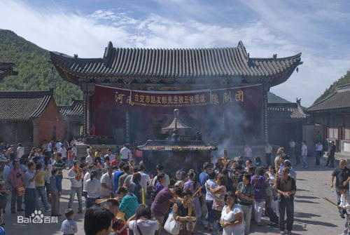 五爺廟里殿內(nèi)供奉的五爺是廣濟龍王文殊菩薩的尊稱,也是五臺山五頂文殊菩薩的化身,因而,這里是整個五臺山香火最盛的寺廟。而事實上,應(yīng)該說五爺其實就是文殊菩薩在臺懷本土化,世俗化的產(chǎn)物,它承擔起了民間俗神的職能,寄托著當?shù)匕傩掌砼物L(fēng)調(diào)雨順、平安吉祥的愿望。也許正是因為五爺比起其他各大寺院里莊嚴肅穆的菩薩們更親近群眾,更符合急功近利的眾生心愿的緣故吧,小小的五爺廟,在善男信女們的心目中,它幾乎成了有求必應(yīng)的象征,上五臺山燒香的人大部分都是沖著五爺廟去的。在群眾心目中,他們不懂什么佛理,甚至不知道文殊菩薩,但只要一說五爺廟,則遠近聞名,幾乎成了五臺山的一張名片。