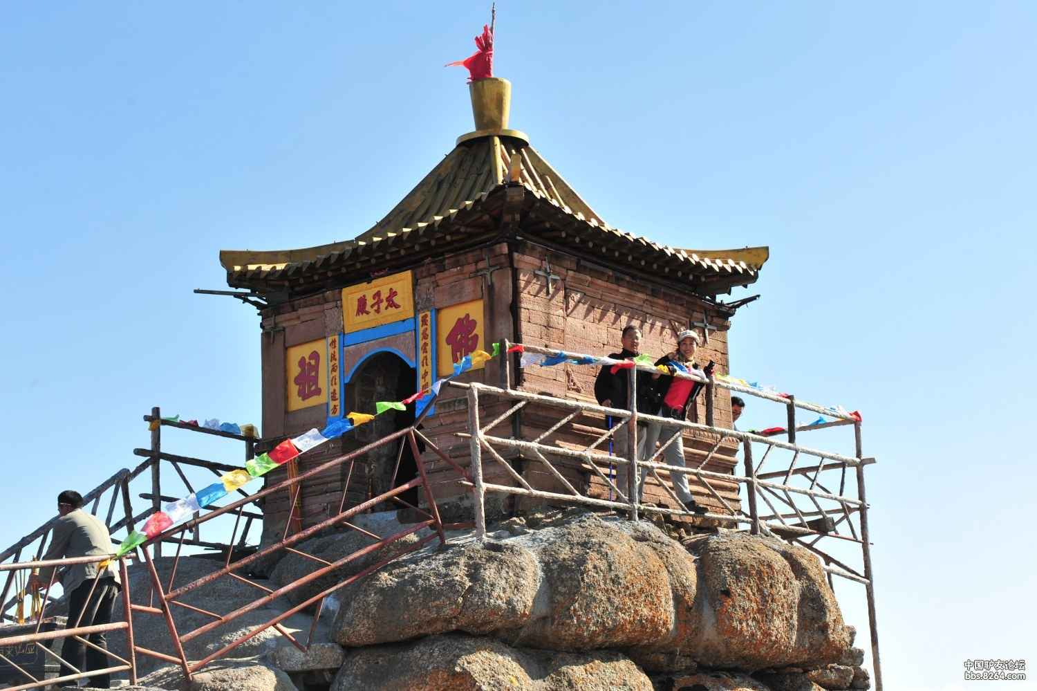 殿中所供“太子”,就是佛祖如來的法身毗盧佛。每遇干旱少雨,附近州縣的百姓便來這里求雨。為了顯示求雨者的誠心,一群男人頭戴柳梢帽,赤腳光膀,用長桿抬著當(dāng)?shù)氐摹褒埻鯛敗保描尨蚬?,一路走來,到山腳下,便要三步一叩拜,一直拜到“離天最近”的太子殿祈雨。據(jù)說,這種做法非常有效,求雨人總能在回家的路上看到甘霖喜降。
