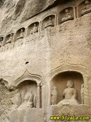 天龍山石窟在山西太原市西南40公里天龍山腰。天龍山亦名方山,海拔高1700米。這里風(fēng)光秀麗,歷史上曾是北齊皇帝高洋之父高歡的避暑宮。四周山巒起伏,遍山松柏蔥郁,山頭龍王石洞泉水蕩漾,山前溪澗清流潺潺。天龍山石窟創(chuàng)建于東魏(公元534—550年),高歡在天龍山開鑿石窟,高歡之子高洋建立北齊的晉陽為別都,繼續(xù)在天龍山開鑿石窟。隋代楊廣為晉王,繼續(xù)開鑿石窟,唐代李淵父子起家于晉陽,建造石窟達到高峰。