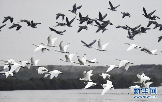 大批候鳥飛抵鄱陽湖越冬