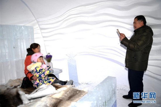 12月24日,在內(nèi)蒙古根河市敖魯古雅鄂溫克民族鄉(xiāng),游客在冰雪酒店里拍照留念。當日,第五屆中國冷極節(jié)在內(nèi)蒙古自治區(qū)根河市開幕。根河市素稱“中國冷極”,當?shù)乩帽┵Y源,并結合獨特的鄂溫克民族風情,打造冬季旅游項目,為游客帶來不一樣的冰雪體驗。新華社記者劉磊攝