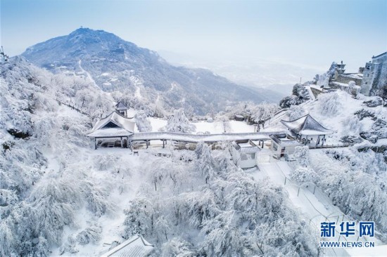 這是1月29日航拍的湖北武漢木蘭山雪后風光。雪后初霽,冰雪覆蓋的武漢風景名勝區(qū)木蘭山宛如幻境。新華社發(fā) 柯皓 攝