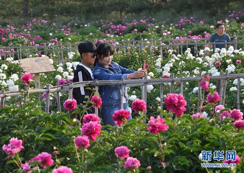 6月2日,游客在和林格爾縣南山旅游景區(qū)觀賞芍藥花。當(dāng)日,2018內(nèi)蒙古和林格爾第九屆芍藥文化旅游節(jié)在和林格爾南山旅游景區(qū)開幕。景區(qū)內(nèi)數(shù)百畝芍藥花競相綻放,吸引眾多游客前來觀賞。新華社記者 鄒予 攝