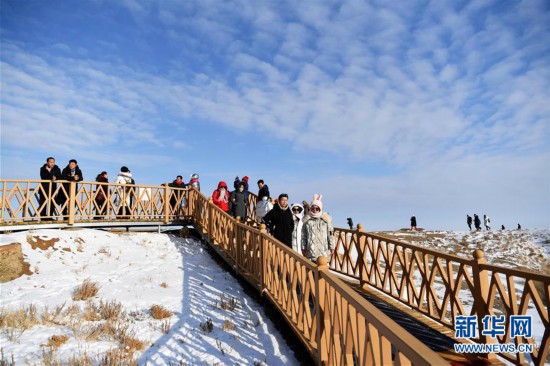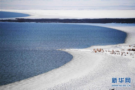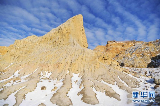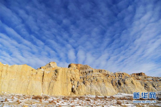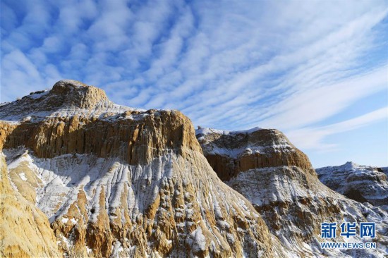 11月26日拍攝的新疆福??h烏倫古湖海上魔鬼城景區(qū)美景。 福??h烏倫古湖海上魔鬼城景區(qū)位于新疆阿勒泰地區(qū)福??h吉力湖東岸,有著獨(dú)特的雅丹地貌和水域景觀,是當(dāng)?shù)刂穆糜蝿俚亍?新華社記者 沙達(dá)提 攝