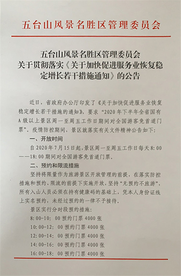五臺山風(fēng)景名勝區(qū)管理委員會關(guān)于貫徹落實《關(guān)于加快促進服務(wù)業(yè)恢復(fù)穩(wěn)定增長若干措施通知》的公告