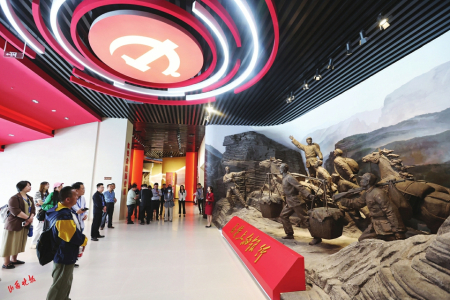 走出虛擬體驗,來一場現(xiàn)實世界的軍旅生活吧。采訪團一行來到升級后的八路軍總部紀念館。提升改造后的紀念館以“烽火麻田,抗戰(zhàn)旗幟”為主題,同時增加戰(zhàn)斗場景、沙盤模型、油畫雕塑、影視片段等展示手段,讓革命文物得以全景式、立體式、延伸式展示宣傳,全面展示了抗日戰(zhàn)爭時期八路軍總部駐扎麻田,帶領軍民浴血奮戰(zhàn)取得抗戰(zhàn)勝利波瀾壯闊的歷史。