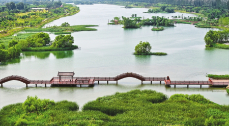 6月29日拍攝的太原汾河景區(qū)四期,郁郁蔥蔥的植被、清澈的河水、自由嬉戲的飛鳥,共同構(gòu)成了一幅生機(jī)勃勃的生態(tài)畫卷。盛夏時(shí)節(jié),太原汾河景區(qū)四期空氣清新,花香四溢,吸引眾多市民前來(lái)游玩。