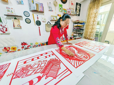 剪紙,是一種用剪刀或者刻刀在紙上剪刻花紋,是中國漢族最古老的民間藝術之一,其特點主要表現(xiàn)在空間觀念的二維性,刀味紙感,線條與裝飾相得益彰。其作品因寫意與寓意相互融合,而具有獨特的藝術魅力。 8月31日上午9時許,正值周末假期,位于太原市迎澤區(qū)的一處安靜的老式單元樓內(nèi),太原市非遺任氏民俗剪紙的第四代傳承人任麗紅,正在自己的工作室,認真而忘我地研究著山西古建的基本結構與建筑風格。而在她的旁邊,則放著早已準備好的刻刀、大紅宣紙、小剪刀、各色養(yǎng)料、毛筆等制作剪紙所需的工具和材料。 日前,國產(chǎn)游戲《黑神話:悟空》一上線就火遍海內(nèi)外。值得的一提的是,《黑神話:悟空》的爆火,也讓其中的山西古建頻頻“出圈”,吸引不少游客來山西參觀旅游,近距離感受山西古建的魅力所在。 看到山西古建再次走進大眾視野,剪紙傳承人任麗紅便有了一個想法,要通過剪紙的形式,將《黑神話:悟空》里的27個山西景點一一呈現(xiàn)出來。 任麗紅,山西太原人,國家一級美術師、山西省傳統(tǒng)工藝美術大師。自幼學習家傳剪紙技藝,其作品既有北方剪紙的粗獷,也有南方剪紙的纖秀,二者巧妙融合,寫實而不拘泥,夸張而不變形。 山西晚報記者注意到,任麗紅在研究的過程中,時不時還要翻閱手邊的《中國通史》《中國工藝美術史》《中國美術》等專業(yè)書籍?!吧轿魑幕滋N濃厚,山西古建更是中國古建筑的寶庫,所以想剪好并不容易,為了達到自己心目中的一個愿望,我必須了解山西古建更多的歷史文化知識?!比嘻惣t說。 上午10時許,任麗紅終于拿起剪紙刀,此時的工作室內(nèi),一人、一筆、一紙、一 刀,任麗紅正式開始了當天山西古建作品——應縣木塔的創(chuàng)作。與此同時,山西晚報記者看到,在她面前近3米長的桌子上,還擺放著云岡石窟、晉祠、關帝廟、永樂宮壁畫等多張已經(jīng)創(chuàng)作完成的山西古建作品,而每一幅作品,均線條優(yōu)美、惟妙惟肖,無不展現(xiàn)出山西歷史的厚重及山西古建的渾厚莊嚴。 10時40分許,經(jīng)過一番摳、剪、畫、刻后,應縣木塔的一層樓閣已經(jīng)雛形初見,此時任麗紅停下創(chuàng)作,又拿起之前搜集到的一些應縣木塔的圖片材料,經(jīng)過一番認真分析與比對后,任麗紅又再次拿起剪刀,開始了進一步的剪刻。 “剪紙,是慢工出細活,而用剪紙的方式創(chuàng)作古建筑,除了慢還要更加謹慎,因為里面的線條是比較難剪刻的,所以,為了達到更好的效果,我的古建剪紙作品,差不多需要一到兩天的時間,才能完成一幅。”任麗紅介紹說。 記者在采訪中了解到,自8月20日開始,任麗紅已創(chuàng)作云岡石窟、晉祠等山西古建剪紙作品11幅,其余作品預計于9月底全部完成。同時任麗紅表示,待所有作品全部創(chuàng)作完畢后,將對其一一進行裝裱,預計于10月至12月,她將帶著這些作品分別走進太原市各大、中、小學校,進行山西古建剪紙作品巡回展。 “作為剪紙傳承人,同時我也是一名小學老師,我最大的心愿,是想用剪紙的方式,將山西古建完美呈現(xiàn)出來。另外,用舉辦剪紙作品展這種方式,讓更多孩子們在了解剪紙的同時了解山西古建。同時,經(jīng)過有趣而直觀地學習,引導孩子們讀懂山西古建,最終愛上山西古建?!比嘻惣t說。 山西晚報記者 李婷 (責任編輯:梁艷) |