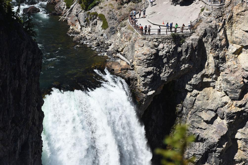 2019年9月3日,游客在美國(guó)黃石國(guó)家公園觀(guān)賞下瀑布。新華社記者韓芳攝