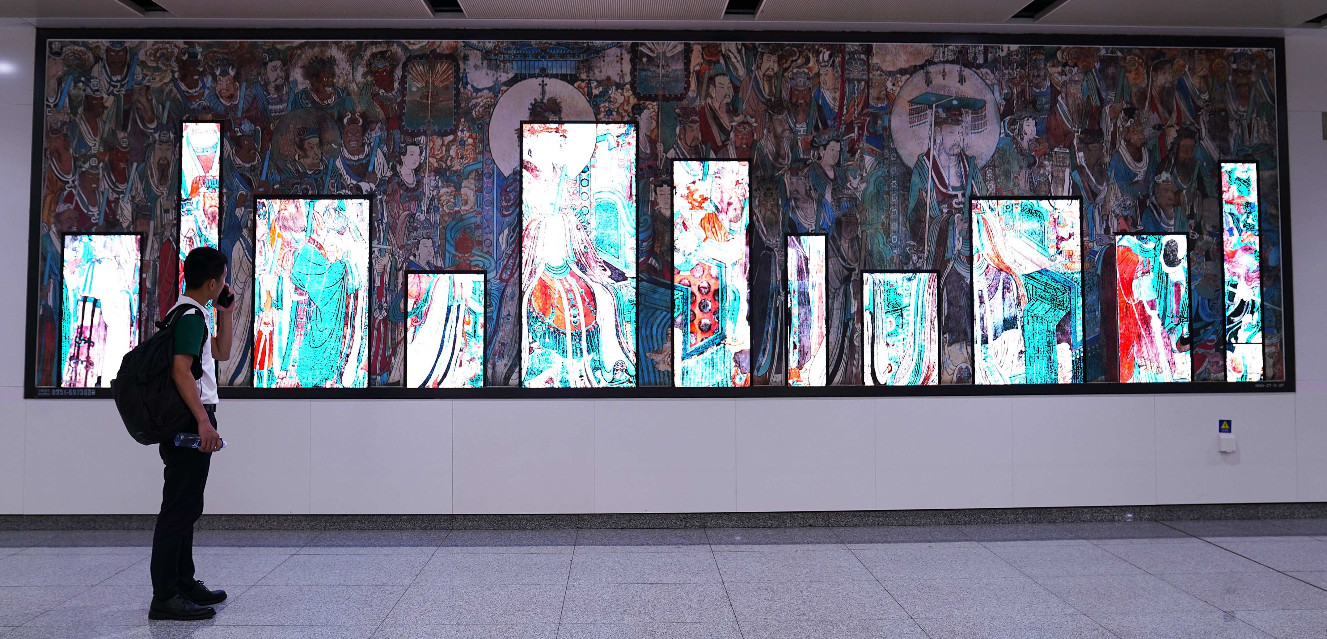 連永樂宮壁畫的絢麗、云岡石窟大佛的莊嚴、應縣木塔的精巧,都被藝術復刻在站廳里——等車的間隙,有人會盯著壁畫上的飛天出神,有人會摸著梁思成筆下的古塔紋路發(fā)呆,匆忙的通勤路,忽然就多了份文化的滋養(yǎng)。