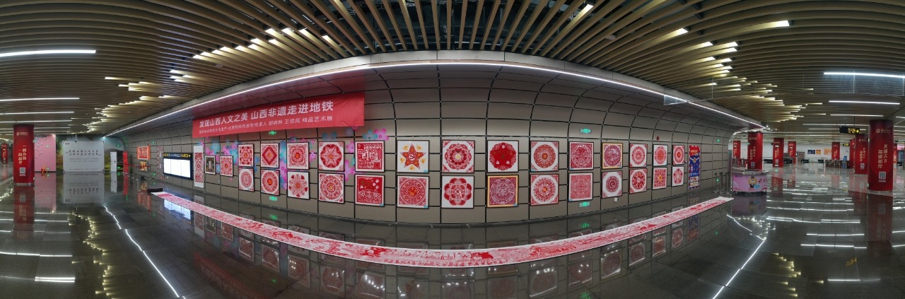 國家級非物質文化遺產代表性項目太原剪紙在太原地鐵2號線長風街站展示。井宇豪 攝