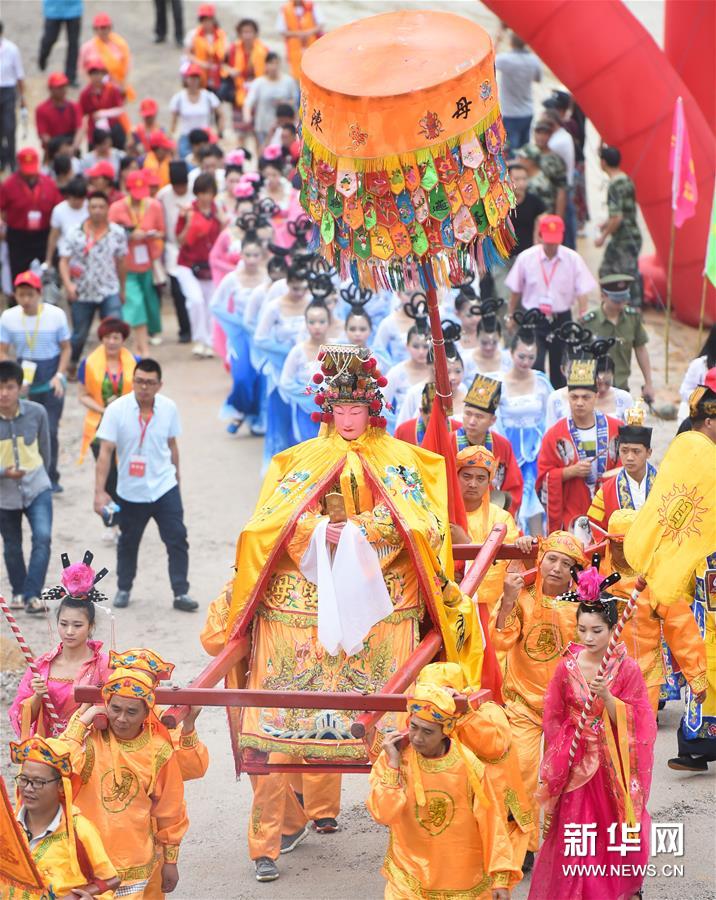 6月13日,福建省寧德市古田縣舉行臨水夫人祭祀大典,為海峽論壇的重要組成部分——陳靖姑文化節(jié)拉開序幕。本屆文化節(jié)以“臨水緣·兩岸情”為主題,港澳臺(tái)及內(nèi)地近千名信眾共同參加。作為國家級非物質(zhì)文化遺產(chǎn)“陳靖姑信俗文化”的發(fā)祥地,福建省古田縣充分以陳靖姑信俗文化為紐帶,通過不斷加深對外文化交流與合作,對推動(dòng)兩岸關(guān)系和平發(fā)展、我國與海絲沿線國家民間交流起到了積極作用。陳靖姑被譽(yù)為“婦女兒童保護(hù)神”,在世界各地信眾已逾億人。新華社記者 宋為偉 攝