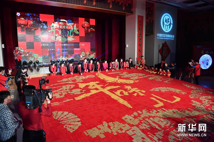 1月11日,“尋找曾經(jīng)的年味兒”全國(guó)大型公益行動(dòng)在北京中國(guó)婦女兒童博物館啟動(dòng),通過(guò)發(fā)放年味兒畫冊(cè)、舉辦年味兒趣味活動(dòng),弘揚(yáng)傳統(tǒng)文化,同時(shí)為貧困家庭、醫(yī)護(hù)工作者送去問(wèn)候與關(guān)愛(ài)?;顒?dòng)中,由近6萬(wàn)個(gè)紅包拼鋪而成的64平方米“最大紅包拼圖”載入吉尼斯世界紀(jì)錄。春節(jié)期間,北京、濟(jì)南、石家莊、鄭州、哈爾濱等五座城市都將開(kāi)展尋找年味兒的相關(guān)活動(dòng)。新華社記者 李鑫 攝