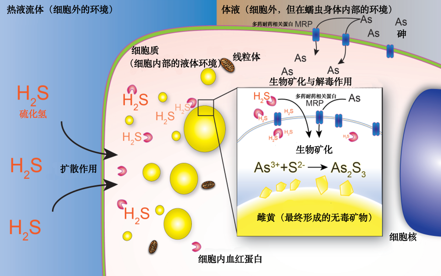 2025年8月,中國(guó)科學(xué)院海洋研究所的研究團(tuán)隊(duì)在《PLOS生物學(xué)》(PLOS Biology)上發(fā)表了一項(xiàng)驚人發(fā)現(xiàn):赫斯帕拉爾文氏蠕蟲通過(guò)一種前所未有的“以毒攻毒”機(jī)制,將兩種致命毒素——砷和硫化氫——結(jié)合成無(wú)毒的雌黃礦物,實(shí)現(xiàn)了生物界首個(gè)已知的解毒性生物礦化。