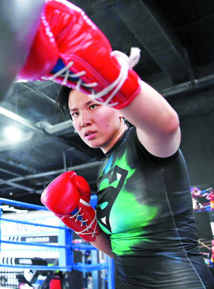 在薛金玉的帶動(dòng)下,搏擊成為她所在健身房最受歡迎的運(yùn)動(dòng)之一,越來越多的“硬核”年輕人走上拳臺(tái),享受搏擊運(yùn)動(dòng)帶來的快樂。“每天從中午到晚上課程安排得非常滿,人多的時(shí)候拳臺(tái)都站不下?!毖鹩裥χf。