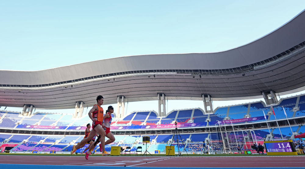 當(dāng)日,伴隨著提振人心的醒獅表演,田徑、聾人籃球等項(xiàng)目都在簡短的開賽儀式后進(jìn)入競賽環(huán)節(jié)。在廣東省奧體中心體育場舉行的田徑比賽傳來捷報(bào),巴黎殘奧會兩銀得主、山東選手郭芊芊在女子400米T35級比賽中,以超世界紀(jì)錄、破全國紀(jì)錄的1分14秒65率先沖線。兩屆殘奧會冠軍、陜西隊(duì)的董飛霞在女子鉛球F55級比賽中摘下桂冠。在她的鼓勵下,陜西隊(duì)當(dāng)天一共獲得6枚田徑金牌。