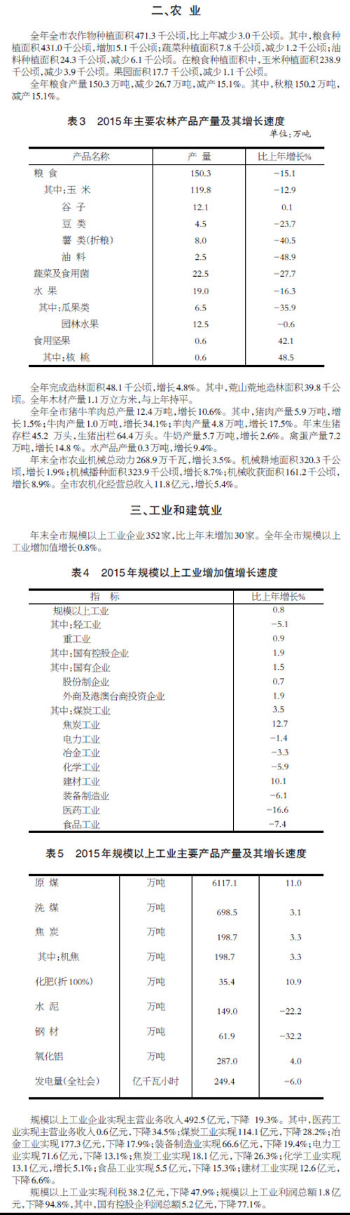 忻州市2015年國民經(jīng)濟(jì)和社會(huì)發(fā)展統(tǒng)計(jì)公報(bào)