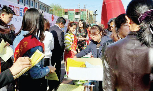 本報(bào)訊 4 月14 日,河曲縣2016 年春風(fēng)行動(dòng)暨“ 民營(yíng)企業(yè)”用工大型招聘會(huì),在河曲縣黃河影劇院門(mén)前舉行。