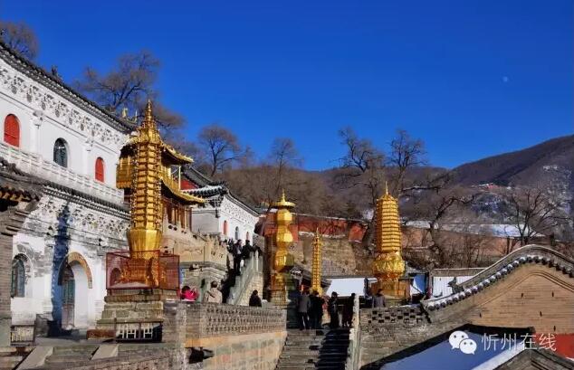 出千缽殿,拾階而上,就到了銅殿和銅塔前。銅殿是一座青銅建筑物,鑄造于明萬歷三十四年(1606)。據(jù)《清涼山志》記載,銅殿是五臺山高僧妙峰于明朝萬歷年間,集全國13省布施,用10萬斤銅鑄成。妙峰大師曾鑄三座銅殿,一座在南京,一座在峨眉山,一座在五臺山,規(guī)格樣式一樣。前二者已失,顯通寺的這座是國內(nèi)僅存的。銅殿前下方左右兩側,各矗立著一座銅塔,于明萬歷三十五年(1607年)鑄成。這里原有五座銅塔,隱含五座臺頂,可惜有三座被日軍侵華時盜走。