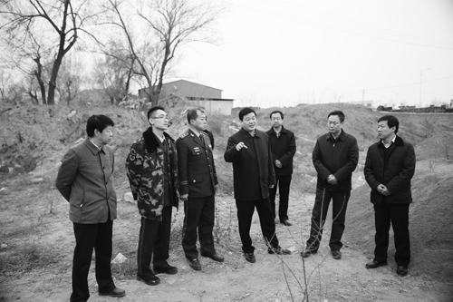 溫建軍市長(左四)帶領(lǐng)相關(guān)部門負(fù)責(zé)人現(xiàn)場辦公。