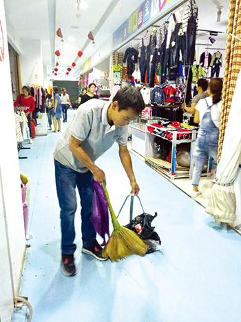 整個云河商場只有一層,共60多家商戶,衛(wèi)生清潔一天3次,工作量雖然不是很大,卻也不輕松。記者見到老馬時,他正在做商場關(guān)門前的最后一次清掃。不時有商戶喊老馬過去收紙箱和塑料袋,老馬加快了手里的動作?!吧虉鍪枪矆鏊?,管理也挺嚴格的,我得隨時注意看哪里有了垃圾,或是公共設施出了問題,要不人來人往怕出事。干凈整潔的環(huán)境代表著商場的形象,也能讓顧客購物時有個好心情,這也是我工作的價值吧?!崩像R坦言,有的人衛(wèi)生習慣特別不好。商場里童裝生意最為火爆,有個別帶孩子的家長直接讓孩子隨地大小便,不僅弄臟了環(huán)境也作了不良示范。老馬希望通過創(chuàng)衛(wèi),大家愛護環(huán)境衛(wèi)生的意識得到提高,這樣他也可以輕松點了。(王菲)