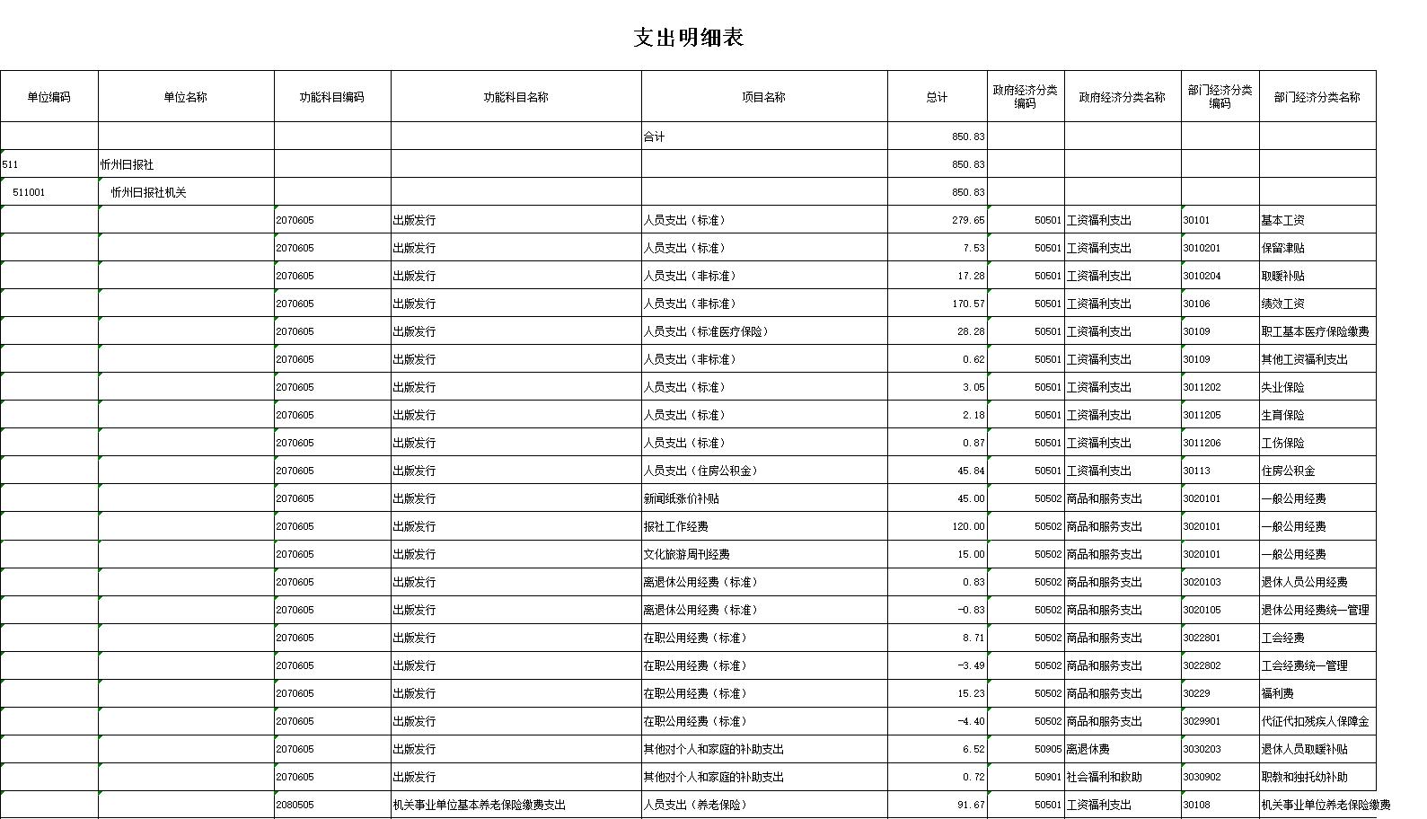 11、支出預(yù)算分經(jīng)濟科目匯總表