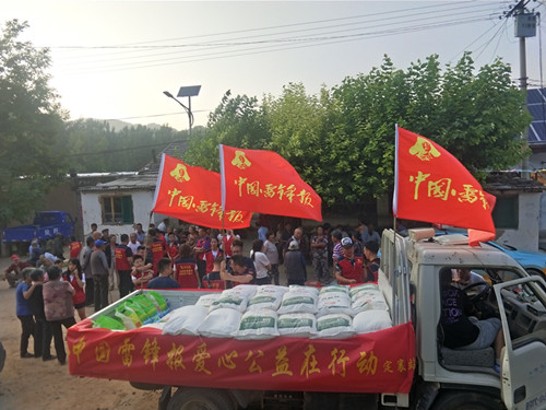 在發(fā)放現(xiàn)場,受災(zāi)群眾感受到了志愿者的關(guān)愛,看在眼里,暖在心里,整個(gè)村里呈現(xiàn)出一片溫馨快樂的氛圍。