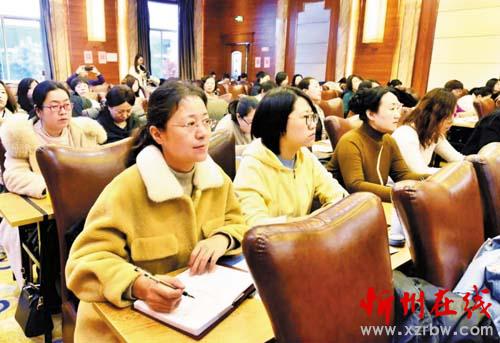 本報訊為落實推進“家家幸福安康工程”,幫助家長系統(tǒng)學(xué)習(xí)家庭教育知識,12月18日,由忻州市婦聯(lián)舉辦的家庭教育培訓(xùn)班隆重開班。市縣兩級婦聯(lián)工作人員、機關(guān)及企事業(yè)單位婦委會工作人員等200余人參加培訓(xùn)。