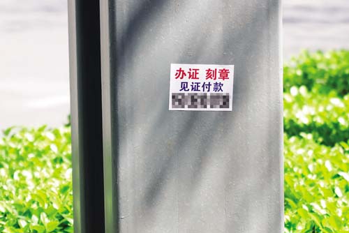 情況二:經(jīng)過創(chuàng)衛(wèi)整治,在清理了小廣告之后被粉刷一新的一些宣傳欄金屬框架上,赫然再現(xiàn)“辦證、刻章、見證付款”等垃圾小廣告,大煞風景,影響市容,令人氣憤。