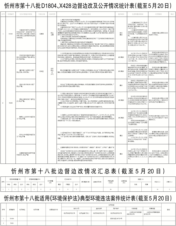 我市高度重視,立即組織查處,截至5月20日,督辦的4件和續(xù)報的2件群眾反映問題已辦結(jié)。其中,確認部分屬實5件;確認不屬實1件。對于部分屬實已辦結(jié)的環(huán)保問題,分別采取了相應(yīng)處理措施,其中罰款39.3萬元,對30名相關(guān)責任人進行了約談,對7名相關(guān)責任人進行了黨紀政紀處分。對6件群眾反映問題調(diào)查處理情況進行了信息公開。