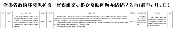 2017年6月3日9時,接收省委省政府環(huán)境保護(hù)第一督察組交辦第六批群眾反映問題8件;按重要性劃分,重點群眾反映問題4件、一般群眾反映問題4件;按區(qū)域分,忻府區(qū)3件、靜樂縣1件、保德縣1件、定襄縣1件、原平市1件、神池縣1件;按污染類型分,大氣5件、噪聲2件、垃圾1件、水1件、光1件、其他1件。