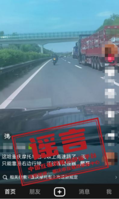 真相:近日,重慶市大足區(qū)網(wǎng)民楊某在互聯(lián)網(wǎng)平臺發(fā)布信息稱“重慶摩托車也可以上高速路了”,引發(fā)關注。經(jīng)交管部門核實,根據(jù)《重慶市公路管理條例》第三十一條規(guī)定:在高速公路、高速公路用地范圍內,禁止非機動車、摩托車、拖拉機、輪式專用機械車、鐵輪車、履帶車和可能損害路面的機具行駛。網(wǎng)傳信息系謠言。目前,大足警方已對造謠網(wǎng)民楊某依法予以查處。(來源:“重慶辟謠”微信公眾號)