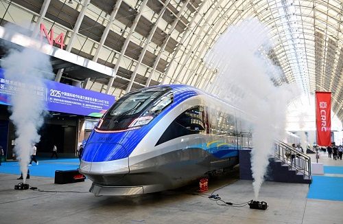 2025年9月18日,由中國(guó)中車自主研制且擁有完全自主知識(shí)產(chǎn)權(quán)的首列中國(guó)標(biāo)準(zhǔn)智能市域列車暨京雄快線列車在青島亮相。新華社記者 李紫恒 攝