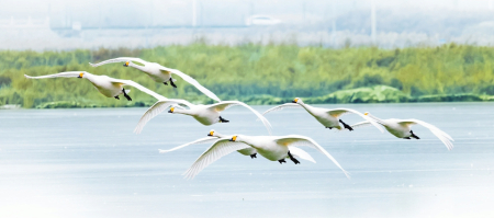 生態(tài)蝶變帶來(lái)了生物多樣性的躍升,鳥類種類從2021年前的100余種增至240多種,越冬天鵝數(shù)量從幾十只壯大到二百多只,反嘴鷸集群起飛鋪就“鳥浪”奇觀。
