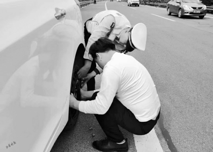 5月3日,山西高速交警一支隊六大隊民警巡邏時,發(fā)現(xiàn)一輛轎車在高速公路上行駛時突然爆胎,車主不得已將車停在路邊。高速交警首先對現(xiàn)場進(jìn)行了安全防護(hù),發(fā)現(xiàn)車輛的一個輪胎已經(jīng)徹底破損,交警與司機(jī)一起更換了輪胎。
