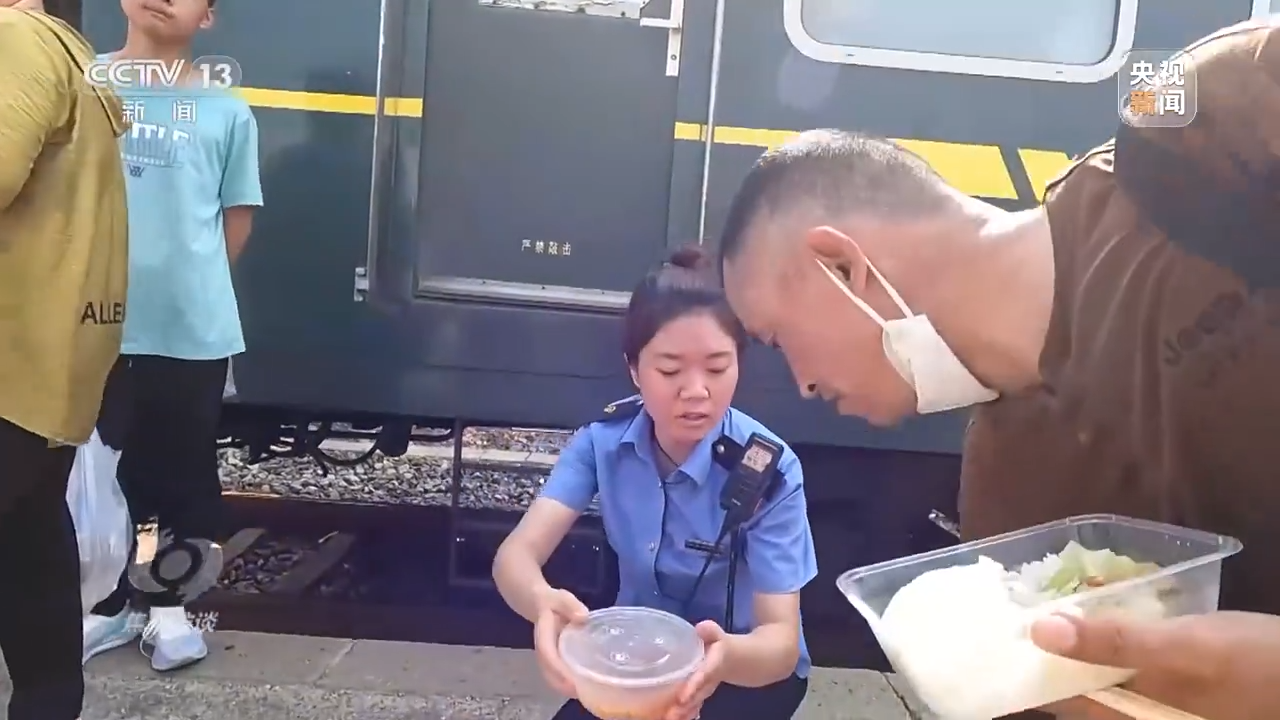 7月29日,K1178次列車從銀川出發(fā),7月30日因北京地區(qū)暴雨晚點(diǎn),停靠在沿河城站停1站臺。當(dāng)天下午,列車晚餐供應(yīng)已經(jīng)短缺。17時左右,沿河城站為列車補(bǔ)給方便面100件、八寶粥20箱、礦泉水5件、火腿腸2箱、雞蛋200個,免費(fèi)為旅客發(fā)放。沿河城站是個只有3名工作人員的小站,物資很有限,加上被困的時間長,旅客的情緒開始激動。面對旅客的復(fù)雜情緒,乘務(wù)人員想到要發(fā)揮黨員的帶頭作用。