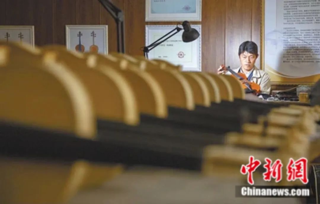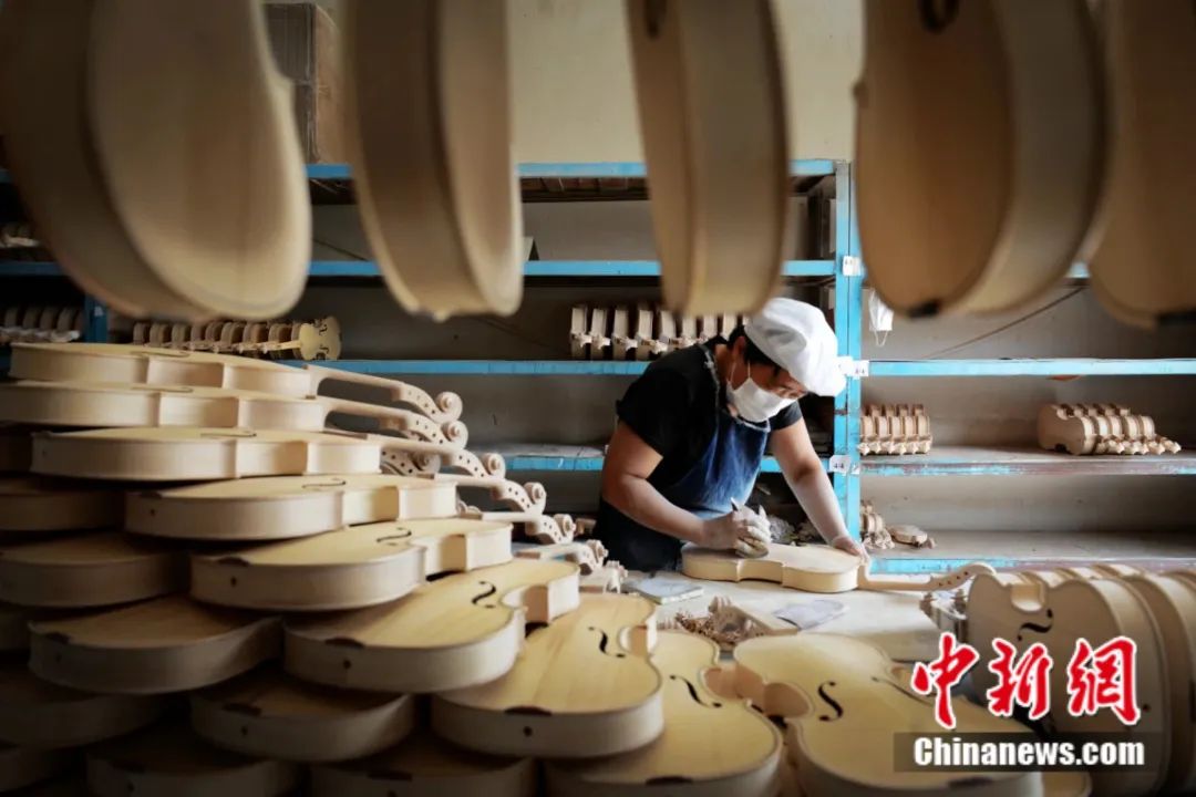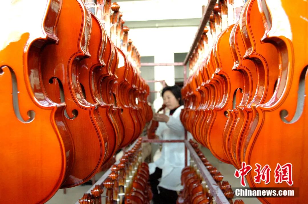 黃國(guó)建 攝 黃橋小鎮(zhèn)琴聲“飄香”海外, 小提琴每年出口銷量達(dá)72萬把, 占中國(guó)小提琴出口量的53%, 年產(chǎn)值超10億元。