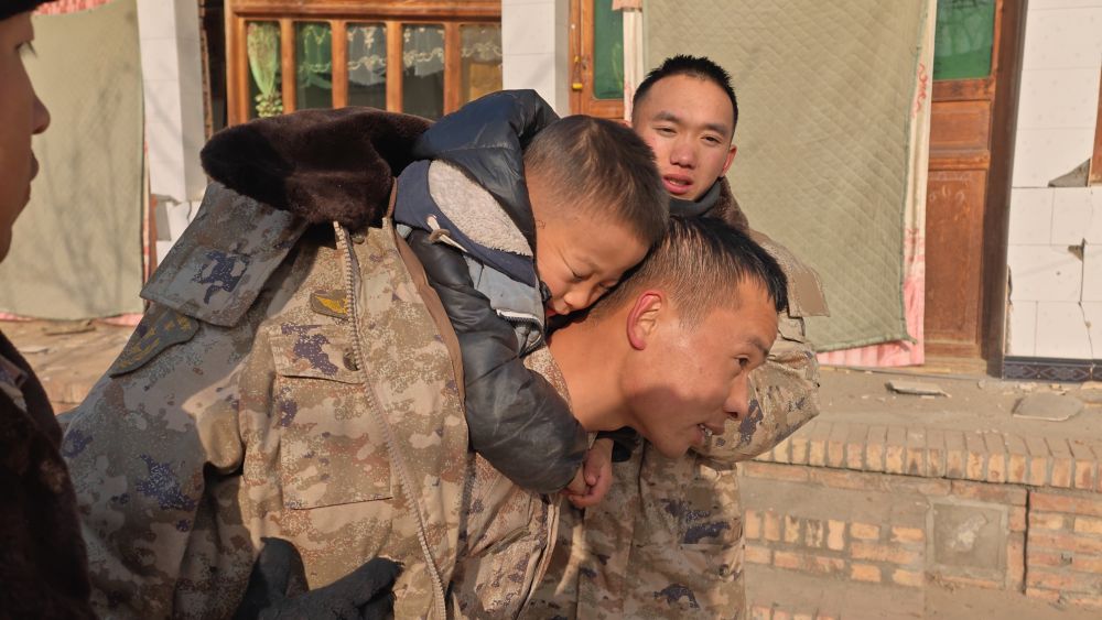 ↑ 12月19日,西部戰(zhàn)區(qū)第76集團軍某旅官兵在甘肅省臨夏回族自治州積石山縣大河家鎮(zhèn)陳家小學展開救援。新華社發(fā)(馮彥榮攝)