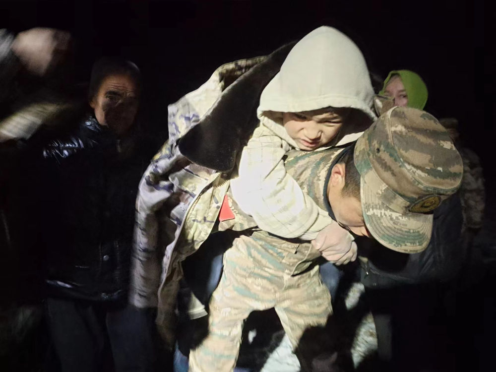 ↑ 12月19日,武警甘肅總隊臨夏支隊官兵在甘肅省臨夏回族自治州積石山縣劉集鄉(xiāng)陽屲村展開救援。 新華社發(fā)(侯崇慧攝)
