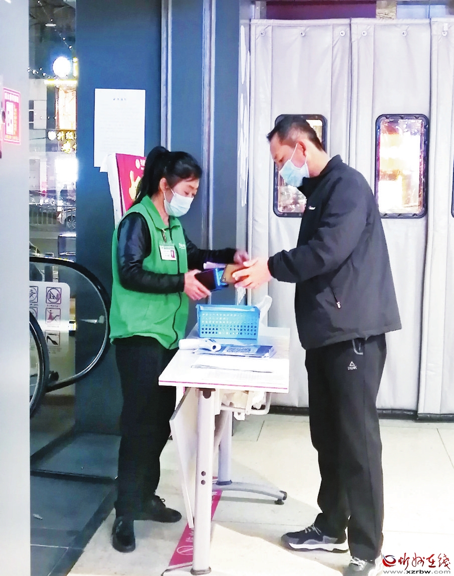 從嚴(yán)從實(shí)抓好疫情防控工作,涉及方方面面,須臾不可松懈。圖為城區(qū)華美超市顧客進(jìn)入購(gòu)物必須測(cè)體溫,出示健康碼和行程碼。(記者 李 濤 攝)
