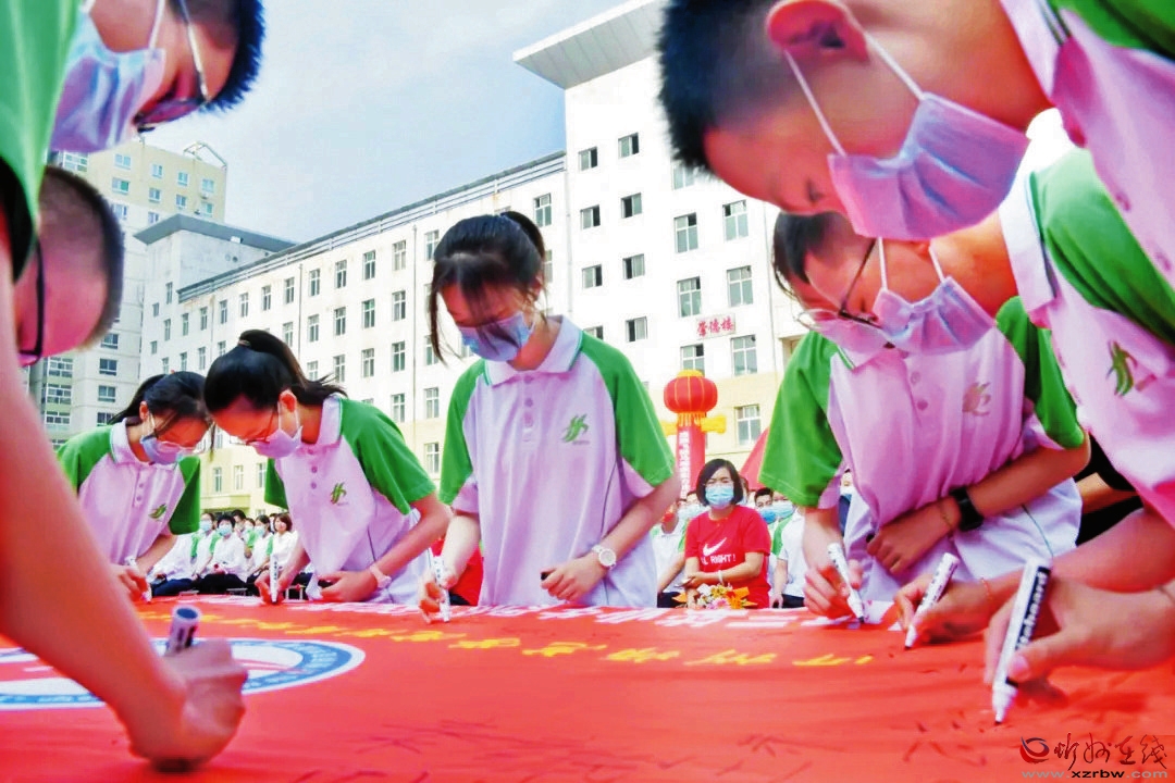 近日,忻州師范學(xué)院附屬外國語中學(xué)舉行2022屆初三學(xué)生畢業(yè)典禮,學(xué)校領(lǐng)導(dǎo)、家長代表、初三年級老師共聚現(xiàn)場,為學(xué)業(yè)有成、即將離開母校、開啟人生新征程的畢業(yè)生送行,并送上美好祝福。畢業(yè)生們心懷感恩,在校旗上簽下自己的名字,期待新的開始。(趙晨善 攝影報(bào)道)