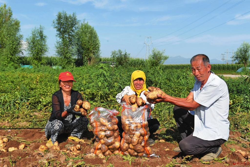 盛夏時節(jié),定襄縣邱村鑫宏瑞合作社種植的297畝春土豆喜獲豐收,畝產(chǎn)可達6000多斤。社員們搶抓農(nóng)時收獲土豆,田間地頭呈現(xiàn)出一派豐收場景。據(jù)了解,合作社采取訂單式種植,在當(dāng)?shù)劁N售的同時,還銷往河北、河南等地,有力促進了當(dāng)?shù)剞r(nóng)業(yè)增效、農(nóng)民增收。 (張玉虎 攝)